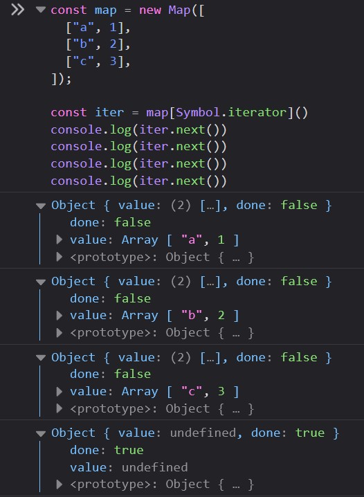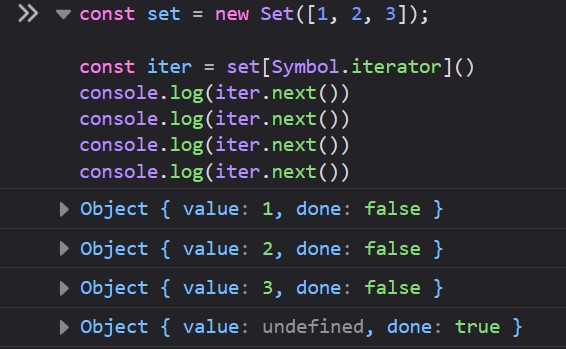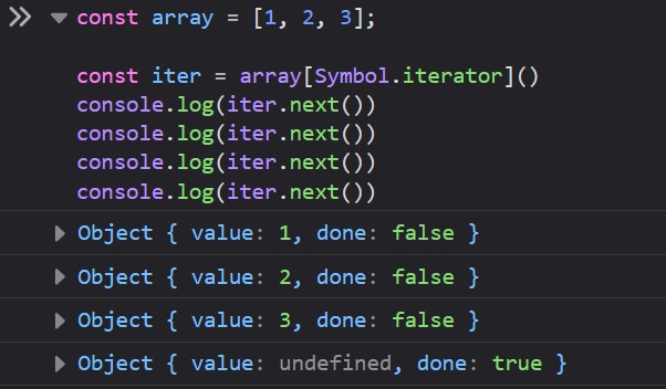 console.log(iterator[Symbol.iterator]() === iterator) // true
